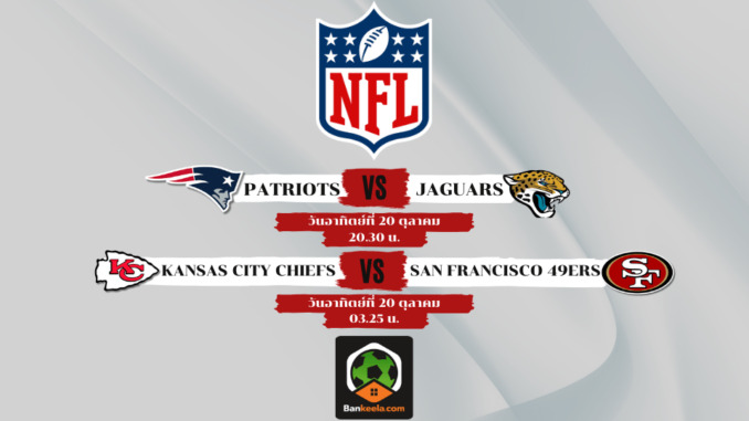- 20:30 – 00:00 น. New England Patriots VS Jacksonville Jaguars