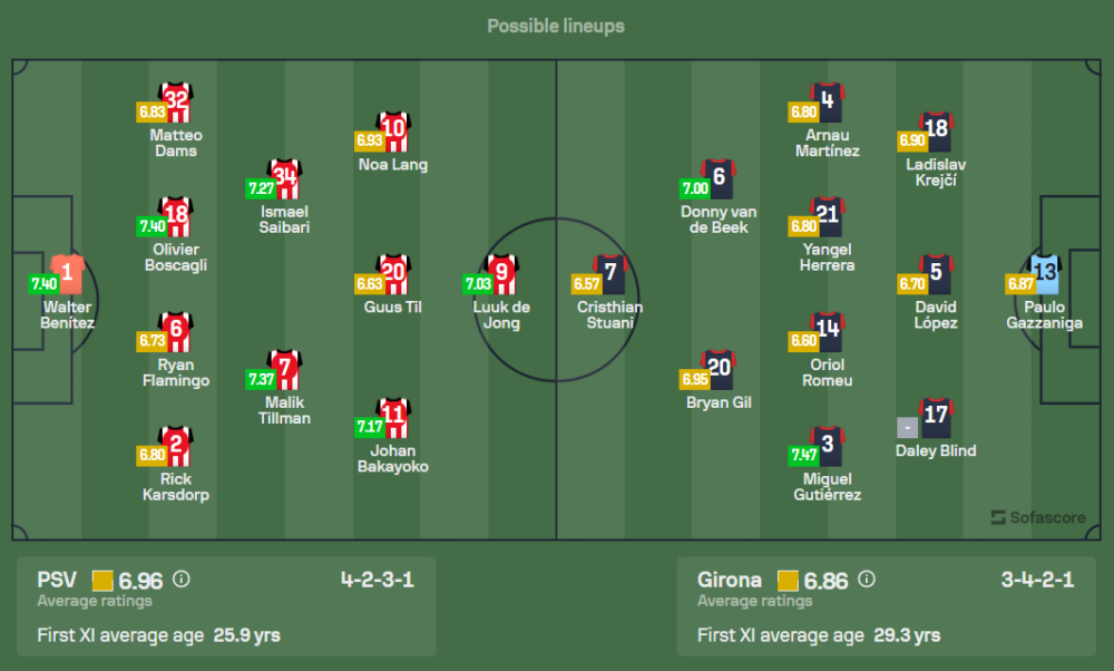 พีเอสวี เจ้าบ้านยังต้องเผชิญกับการขาดตัวหลักบางรายอย่าง แซร์จินโญ่ เดสต์, โจอี้ย์ แฟร์มัน, เยอร์ดี้ ชูเตน และ เออร์วิ่ง โลซาโน่ ที่ยังมีอาการบาดเจ็บ แต่ผู้เล่นหลักจากเกมที่พ่าย อาแจ็กซ์ 2-3 พร้อมลงสนาม เกมนี้คาดว่าจะใช้ระบบ 4-2-3-1 โดยมี โยฮัน บากาโยโก้, กุส ติล, และ โนอา แลง คอยสร้างสรรค์เกมรุกสนับสนุน ลุค เดอ ยอง ที่ยืนเป็นกองหน้าตัวเป้าในการล่าตาข่าย