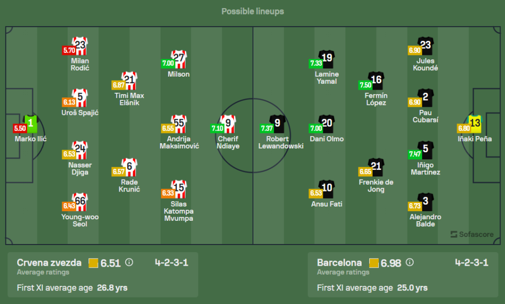 แมตช์นี้ถือเป็นการพบกันครั้งแรกระหว่าง เซอร์เวน่า ซเวซด้า และ บาร์เซโลน่า โดยที่ทั้งสองทีมยังไม่เคยปะทะกันมาก่อนในประวัติศาสตร์การแข่งขัน การเจอกันครั้งนี้จึงเต็มไปด้วยความท้าทายและความตื่นเต้นที่แฟนบอลต่างรอคอยว่าทีมใดจะสามารถคว้าแต้มสำคัญในศึกยูฟ่าแชมเปียนส์ลีกนี้