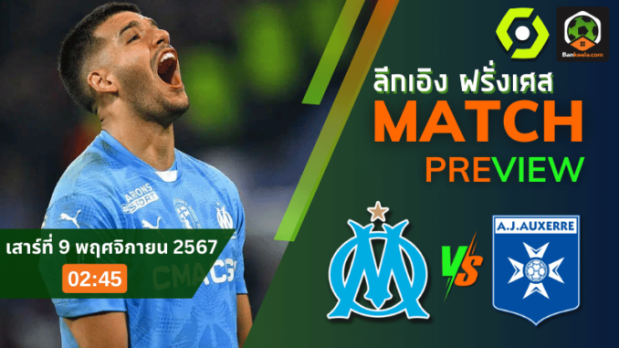 วิเคราะห์บอลสด ลีกเอิง ฝรั่งเศส 2024 โอลิมปิก มาร์กเซย ปะทะ เอเจ โอแซร์ วันเสาร์ที่ 9 พฤศจิกายน 2567 เวลา 02.45 น.