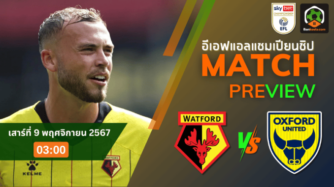 ศึกฟุตบอล อีเอฟแอล แชมเปียนชิพ 2024 คืนนี้เป็นการพบกันระหว่าง วัตฟอร์ด ทีมเจ้าบ้านที่กำลังมองหาชัยชนะต่อหน้าแฟนบอล กับผู้มาเยือน อ็อกซ์ฟอร์ด ยูไนเต็ด ที่กำลังต้องการแต้มเพื่อลุ้นอันดับที่ดีขึ้นในลีก การเจอกันครั้งนี้มีความสำคัญสำหรับทั้งสองฝ่าย โดยเฉพาะทางวัตฟอร์ดที่ต้องการใช้ฟอร์มในบ้านเพื่อเรียกความมั่นใจกลับคืนมา ขณะที่ฝั่งของอ็อกซ์ฟอร์ด ยูไนเต็ด ต้องการล้างอายจากฟอร์มนอกบ้านที่ไม่ค่อยสู้ดีนัก ทีเด็ดบอล ชี้ว่าแมตช์นี้มีแนวโน้มที่จะเป็นเกมที่ดุเดือดและสนุกเร้าใจอย่างแน่นอน