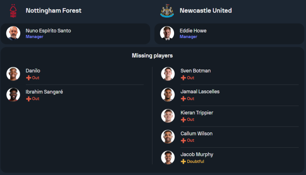 เอ็ดดี้ ฮาว ยังคงโชว์ฟอร์มเข้มในการพานิวคาสเซิ่ลเก็บชัยชนะจากทีมยักษ์ใหญ่เช่น อาร์เซน่อล แต่ในเกมนี้ยังคงไม่มีผู้เล่นตัวหลักหลายรายที่ยังเจ็บยาว ได้แก่ เจค็อบ เมอร์ฟี่, คัลลั่ม วิลสัน, คีแรน ทริปเปียร์, จามาล ลาสเซลส์ และ สเวน บ็อตแมน แม้ว่าจะขาดผู้เล่นบางคน แต่ฮาวยังคงไว้ใจในชุดที่เพิ่งเอาชนะอาร์เซน่อลมาได้ นำโดย โชลินตอน ที่จะประสานงานในแนวรุกกับ แอนโธนี่ กอร์ดอน และ อเล็กซานเดอร์ อิซัก ในระบบ 4-3-3