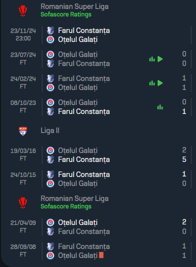 เมื่อย้อนดูสถิติการพบกันของทั้งสองทีมใน 10 นัดหลังสุด ซีเอฟอาร์ คลูจ์ ดูเป็นทีมที่เหนือกว่าอย่างชัดเจน โดยเก็บชัยชนะได้ถึง 7 นัด เสมอ 2 นัด และแพ้เพียง 1 นัดเท่านั้น ซึ่งนัดล่าสุดจบลงด้วยผลเสมอ 2-2 ทำให้ เอฟซี โอเตลุล กาลาติ ยังไม่สามารถคว้าชัยในบ้านได้เมื่อเจอกับคู่แข่งรายนี้ ความได้เปรียบยังคงเป็นของทีมเยือน