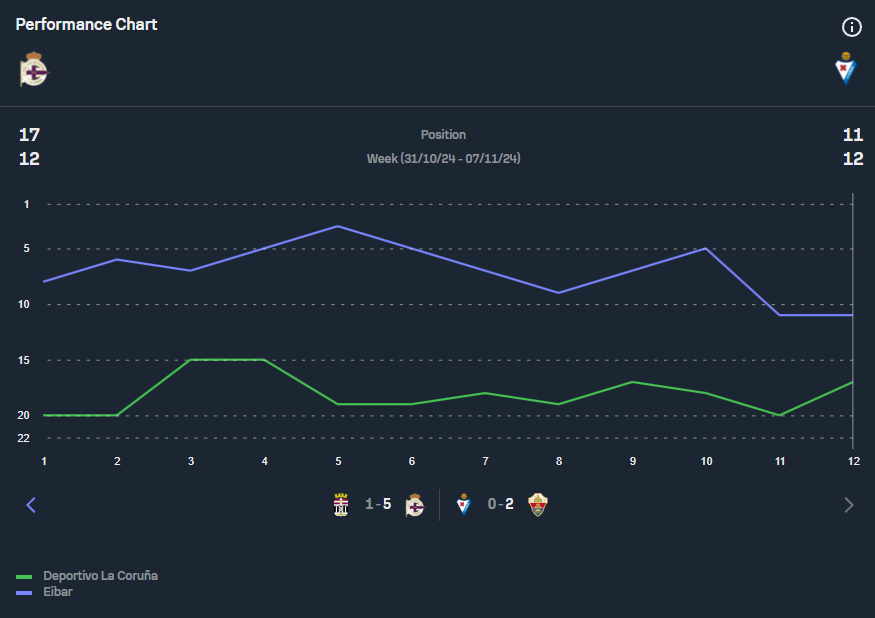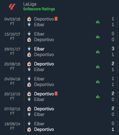 ในการเจอกันครั้งก่อนๆ ทั้งสองทีมแสดงให้เห็นถึงความสูสี แต่เมื่อพิจารณาจากสถิติ 10 นัดหลังสุด เดปอร์ติโบ ลา คอรุนญ่า มีผลงานที่ดีกว่า โดยเอาชนะได้ถึง 4 นัด เสมอ 4 นัด และแพ้เพียง 2 นัดเท่านั้น ซึ่งในเกมล่าสุดที่พบกันนั้นจบลงด้วยการเสมอกัน 1-1 ทำให้เห็นได้ว่าผลงานของ ลา คอรุนญ่า ยามเจอ เออิบาร์ ถือว่าค่อนข้างเหนือกว่า