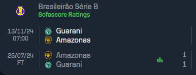 เมื่อย้อนดูสถิติการพบกันของทั้งสองทีมในฤดูกาลนี้ ทั้งสองทีมเคยเจอกันมาเพียงครั้งเดียวเท่านั้น โดยในนัดที่แล้วเมื่อเดือนกรกฎาคมที่ผ่านมา ผลออกมาเสมอกัน 1-1 ที่สนามของอมาโซนาส แม้ว่าเกมนั้นทั้งสองทีมจะเล่นกันได้สูสี แต่กัวรานี่ถือเป็นฝ่ายที่ทำได้ดีกว่าเล็กน้อยในเรื่องของการครองบอล ส่วนอมาโซนาสก็ไม่ยอมแพ้และตามตีเสมอได้ในช่วงท้ายเกม