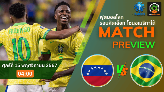 วิเคราะห์บอลสด ทีเด็ดบอล ฟุตบอลโลก รอบคัดเลือก โซนอเมริกาใต้ 2024 เวเนซุเอลา พบ บราซิล วันศุกร์ที่ 15 พฤศจิกายน 2567 เวลา 04.00 น.