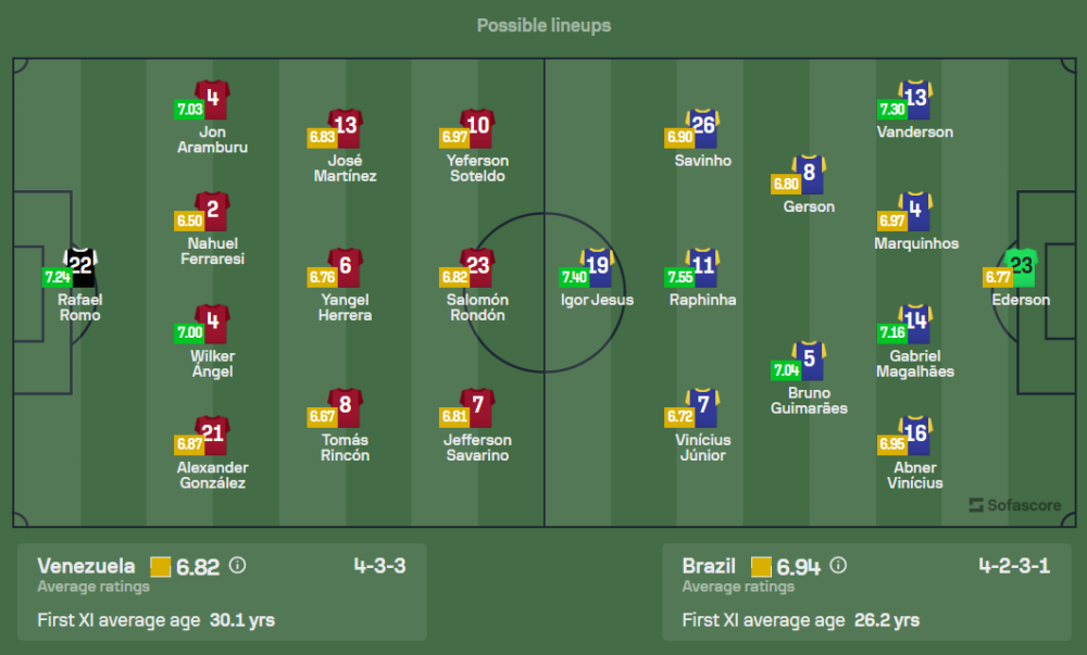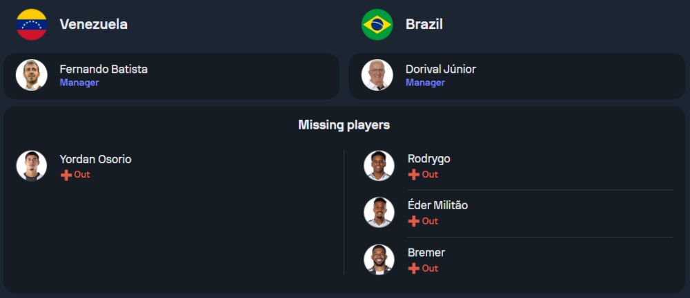ฝั่งทีมเยือน โดริวัล จูเนียร์ เผชิญกับปัญหาผู้เล่นบาดเจ็บหลายราย โดยเฉพาะ อลิสซง เบ็คเกอร์ นายทวารมือหนึ่งจากลิเวอร์พูลที่ไม่พร้อมลงสนาม เช่นเดียวกับ โรดรีโก และ เอแดร์ มิลิเตา สองแข้งตัวหลักจากเรอัล มาดริด อย่างไรก็ตาม บราซิลยังคงมีอาวุธหนักในแดนหน้า โดยจะใช้ระบบ 4-2-3-1 นำทัพโดย วินิซิอุส จูเนียร์, ลุยซ์ เฮนริเก้, และ ราฟินญ่า เป็นแนวรุก พร้อมกับหน้าเป้าคือ อีกอร์ เฆซุส ที่มีความมั่นใจในการล่าประตู