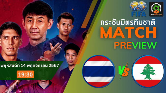วิเคราะห์บอลสด ทีเด็ดบอล กระชับมิตรทีมชาติ 2024 ไทย พบ เลบานอน วันพฤหัสบดีที่ 14 พฤศจิกายน 2567 เวลา 19.30 น.
