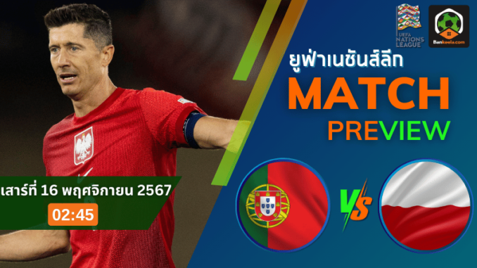 คืนวันเสาร์ที่ 16 พฤศจิกายน 2567 เวลา 02.45 น. ฟุตบอลรายการใหญ่ ยูฟ่าเนชันส์ลีก 2024 โปรตุเกส จะเปิดสนามเหย้ารับการมาเยือนของ โปแลนด์ ซึ่งแมตช์นี้ถือว่าเป็นการปะทะที่มีความสำคัญต่อทั้งสองทีมอย่างยิ่ง สำหรับ โปรตุเกส พวกเขาต้องการเพียงผลเสมอเพื่อการันตีผ่านเข้ารอบ 8 ทีมสุดท้าย ขณะที่ โปแลนด์ ไม่มีทางเลือกอื่นนอกจากคว้าชัยชนะให้ได้ หากยังหวังจะแซงอันดับขึ้นไป การแข่งขันครั้งนี้จึงเป็นการปะทะที่ดุเดือดและเต็มไปด้วยความกดดัน ซึ่งไม่ควรพลาดอย่างยิ่ง!