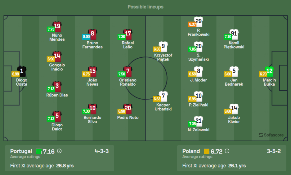 จากสถิติการพบกันล่าสุดระหว่างสองทีม โปรตุเกส เป็นฝ่ายที่ทำผลงานได้ดีกว่า โดยในเกมล่าสุด โปแลนด์ เปิดบ้านและพ่ายให้กับโปรตุเกสไป 1-3 สถิติการพบกันทั้งหมด 7 ครั้งหลังสุด โปรตุเกสเอาชนะได้ 2 เกม เสมอ 4 เกม และแพ้เพียง 1 เกม โดยเฉพาะการเล่นในบ้านของโปรตุเกสมักจบลงด้วยผลเสมอทุกครั้ง การแข่งขันครั้งนี้จึงอาจจะเป็นอีกหนึ่งเกมที่สูสีและเต็มไปด้วยความตึงเครียด