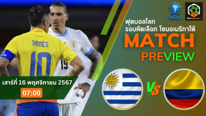 ฟุตบอลโลก รอบคัดเลือก โซนอเมริกาใต้ 2024 ในคืนวันเสาร์ที่ 16 พฤศจิกายน 2567 เวลา 07.00 น. ทีม อุรุกวัย เตรียมเปิดบ้านต้อนรับการมาเยือนของ โคลัมเบีย ศึกนี้มีความสำคัญต่อทั้งสองทีมอย่างมาก! อุรุกวัยต้องการเก็บสามแต้มเพื่อเรียกความมั่นใจกลับคืน หลังจากที่ฟอร์มตกในช่วงหลัง ส่วนทีมเยือนอย่างโคลัมเบียก็มุ่งหวังจะเก็บแต้มเพื่อรักษาอันดับของพวกเขา เกมนี้ถือเป็นอีกหนึ่งแมตช์ที่ดุเดือดและเต็มไปด้วยความตึงเครียดที่แฟนบอลห้ามพลาด!