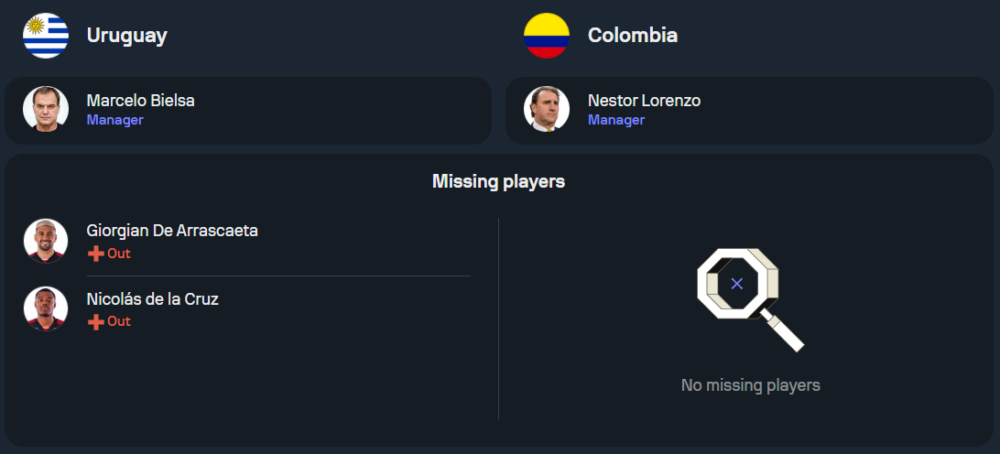 ทีมเจ้าบ้าน อุรุกวัย มีข่าวดีสำหรับแฟน ๆ เพราะพวกเขาจะได้กองหน้าตัวเก่งอย่าง ดาร์วิน นูนเญซ กลับมาลงสนาม หลังจากที่สมาคมฟุตบอลอุรุกวัยยื่นอุทธรณ์สำเร็จ ทำให้โทษแบนของเขาถูกระงับชั่วคราว นอกจากนั้น ผู้เล่นหลักที่เคยติดโทษแบนอย่าง โฮเซ่ มาเรีย ฆิมิเนซ, โรดริโก้ เบนตันกูร์ และ มาติอัส โอลิเวร่า ก็พร้อมลงสนามเช่นกัน คาดว่าอุรุกวัยจะใช้แผนการเล่น 4-3-3 โดยมีสามประสานเกมรุกคือ ฟาคุนโด้ เปลลิสตรี้, ดาร์วิน นูนเญซ, และ มักซิมิเลียโน่ อเราโฆ่ ที่จะคอยล่าประตู