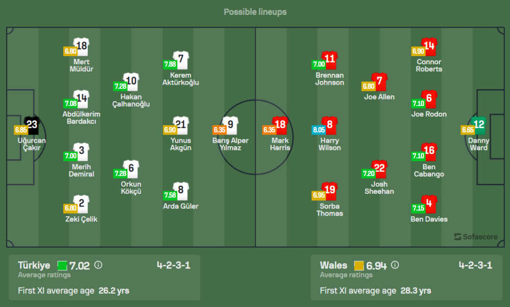 การเจอกันระหว่าง ตุรกี และ เวลส์ ในช่วงที่ผ่านมา เรียกได้ว่าสูสีกันมาตลอด โดยเกมล่าสุดที่เจอกัน เวลส์เปิดบ้านเสมอกันไปแบบไม่มีสกอร์ 0-0 สถิติการเจอกันทั้งหมด 4 ครั้ง ตุรกีชนะ 1 นัด เสมอ 2 นัด และแพ้ 1 นัด แสดงให้เห็นว่าทั้งสองทีมไม่มีใครได้เปรียบกันอย่างชัดเจน และเกมนี้จึงเป็นอีกนัดที่ต้องลุ้นกันอย่างเข้มข้น
