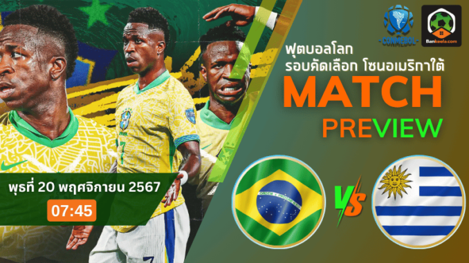 วันพุธที่ 20 พฤศจิกายน 2567 เวลา 07.45 น. ศึกหนักในรอบคัดเลือก ฟุตบอลโลก 2026 โซนอเมริกาใต้ นัดนี้เป็นการปะทะกันระหว่าง บราซิล ที่เปิดบ้านรับการมาเยือนของ อุรุกวัย บราซิลต้องการเก็บ 3 แต้มเพื่อไต่อันดับขึ้นจากที่ 4 ของตาราง ขณะที่ อุรุกวัย ก็ต้องการแต้มเพื่อกลับมาฟื้นฟอร์มให้ได้ แมตช์นี้ถือเป็นเกมที่มีความสำคัญต่อทั้งสองทีม แฟนบอลสามารถติดตามคู่สำคัญใน ตารางบอลวันนี้ ที่ต้องจับตามองอย่างใกล้ชิด
