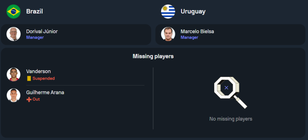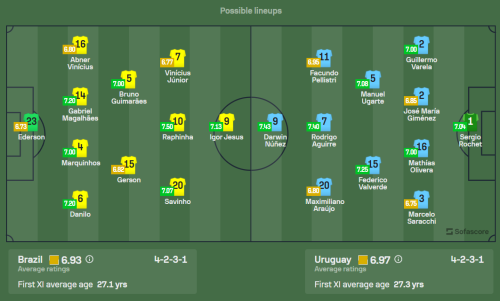 สำหรับฝั่งเจ้าบ้าน บราซิล ภายใต้การคุมทีมของโค้ชคนใหม่ ทีมไม่มีปัญหาผู้เล่นบาดเจ็บหรือติดโทษแบน นักเตะตัวหลักยังอยู่กันครบ ไม่ว่าจะเป็น วินิซิอุส จูเนียร์, กาเบรียล เฆซุส และ เนย์มาร์ ที่ฟิตพร้อมลงสนาม คาดว่าจะมาในระบบ 4-2-3-1 โดยมีเนย์มาร์ยืนเป็นตัวรุกหลักในตำแหน่งหน้าต่ำ พร้อมกับมี กาเบรียล เฆซุส เป็นกองหน้าตัวเป้าในการล่าประตู เกมนี้บราซิลน่าจะเน้นเกมบุกเพื่อเก็บ 3 แต้มเต็มให้ได้ในบ้าน
