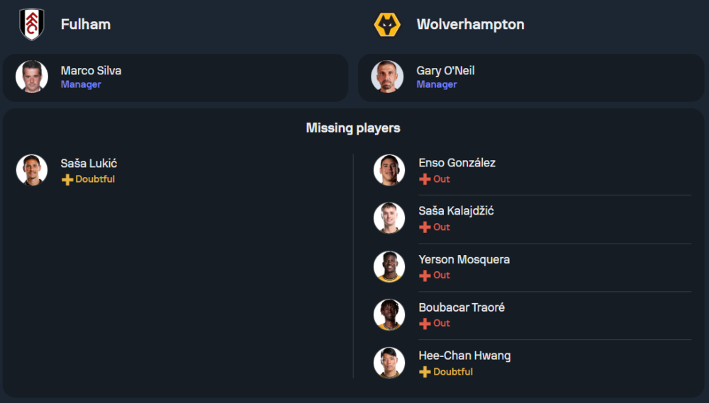 กุนซือ มาร์โก้ ซิลวา มีความมั่นใจกับฟอร์มของลูกทีม หลังจากที่บุกไปเอาชนะ คริสตัล พาเลซ 2-0 ในเกมลีกล่าสุด โดยปัญหาสำคัญของทีมคือการขาด ซาซ่า ลูคิช กองกลางตัวหลักที่ยังบาดเจ็บยาว แต่ผู้เล่นคนอื่นพร้อมลงสนามเต็มที่ คาดว่า ซิลวา จะจัดทีมในระบบ 4-2-3-1 นำโดย ราอูล ฆิเมเนซ ในตำแหน่งกองหน้าตัวเป้า พร้อมสนับสนุนโดยสามตัวรุก แฮร์รี่ วิลสัน, เอมิล สมิธ โรว์ และ อเล็กซ์ อิโวบี้