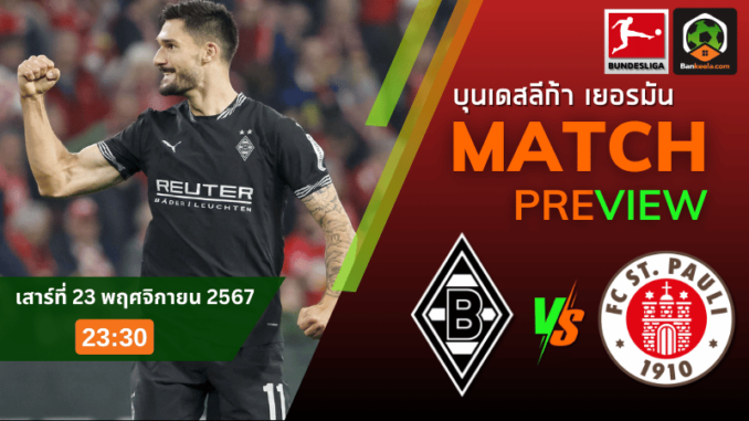 วิเคราะห์บอลสด บุนเดสลีกา 2024 โบรุสเซีย มึนเช่นกลัดบัค พบ ซังต์ เพาลี วันอาทิตย์ที่ 24 พฤศจิกายน 2567 เวลา 23.30 น.
