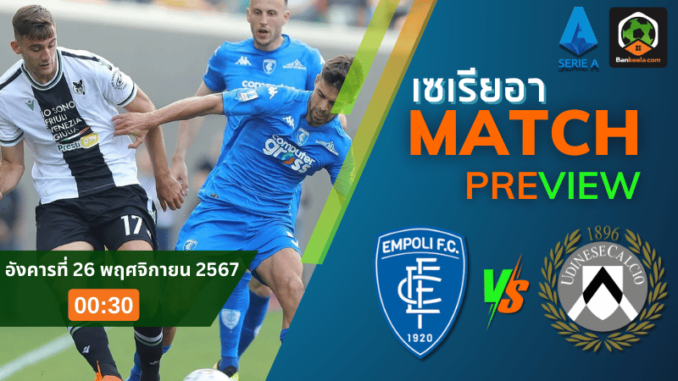 วิเคราะห์บอลสด เซเรียอา 2024 เอ็มโปลี พบ อูดิเนเซ่ คืนวันอังคารที่ 26 พฤศจิกายน 2567 เวลา 00.30 น.