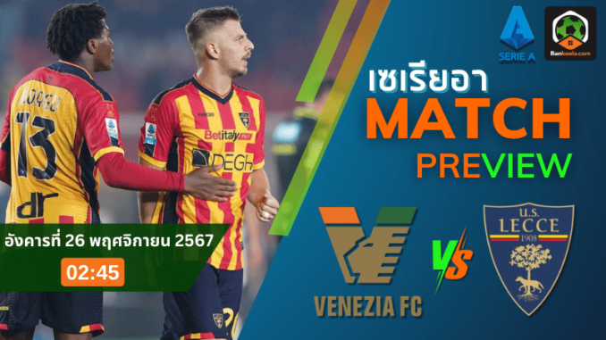 วิเคราะห์บอลสด เซเรียอา 2024 เอซี เวนิช พบ เลชเช่ คืนวันอังคารที่ 26 พฤศจิกายน 2567 เวลา 02.45 น.