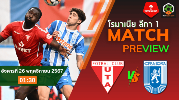 วิเคราะห์บอลสด โรมาเนีย ลีกา 1 2024 ยูทีเอ อารัด พบ ซีเอส คราอิโอว่า คืนวันอังคารที่ 26 พฤศจิกายน 2567 เวลา 01.30 น.