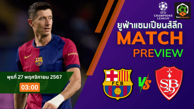 วิเคราะห์บอลสด ยูฟ่าแชมเปียนส์ลีก 2024 บาร์เซโลน่า พบ แบรสต์