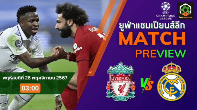 วิเคราะห์บอลสด ยูฟ่าแชมเปียนส์ลีก 2024 ลิเวอร์พูล พบ เรอัล มาดริด วันพฤหัสบดีที่ 28 พฤศจิกายน 2567 เวลา 03.00 น.