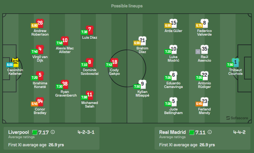 อาร์เน่ สล็อต กุนซือของลิเวอร์พูล ต้องเจอกับปัญหาผู้เล่นบาดเจ็บหลายคน ไม่ว่าจะเป็น อลิสซง เบ็คเกอร์, ดิโอโก้ โจต้า, เทรนท์ อเล็กซานเดอร์-อาร์โนลด์, เฟเดริโก้ เคียซ่า และ คอสตาส ซิมิคาส ทำให้การจัดทีมครั้งนี้ต้องหมุนเวียนผู้เล่นที่เหลืออย่างระมัดระวัง คาดว่าจะใช้ระบบ 4-2-3-1 โดยมี โมฮาเหม็ด ซาลาห์, เคอร์ติส โจนส์ และ โคดี้ กักโป เป็นตัวรุกสนับสนุน หลุยส์ ดิอาส ในแดนหน้า
