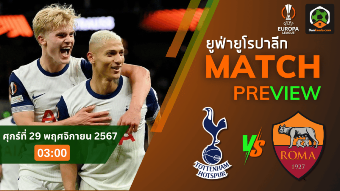 วิเคราะห์บอลสด ยูฟ่ายูโรปาลีก 2024 ท็อตแน่ม ฮ็อทสเปอร์ ปะทะ เอเอส โรม่า วันศุกร์ที่ 29 พฤศจิกายน 2567 เวลา 03.00 น.