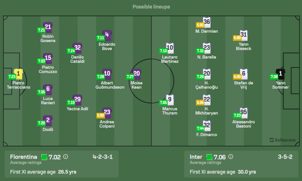 การเจอกันครั้งล่าสุด ฟิออเรนติน่า เปิดบ้านพ่ายอินเตอร์ มิลานไป 0-1 และใน 10 นัดหลังสุด ม่วงมหากาฬเอาชนะได้เพียงครั้งเดียว เสมอ 2 และแพ้ถึง 7 ครั้ง ความเหนือกว่าของอินเตอร์ในแง่สถิติชัดเจน อย่างไรก็ตาม ฟิออเรนติน่าที่กำลังฟอร์มร้อนแรงพร้อมใช้พลังในบ้านและ ทีเด็ดบอล ที่ซ่อนอยู่เพื่อล้มยักษ์ในแมตช์นี้