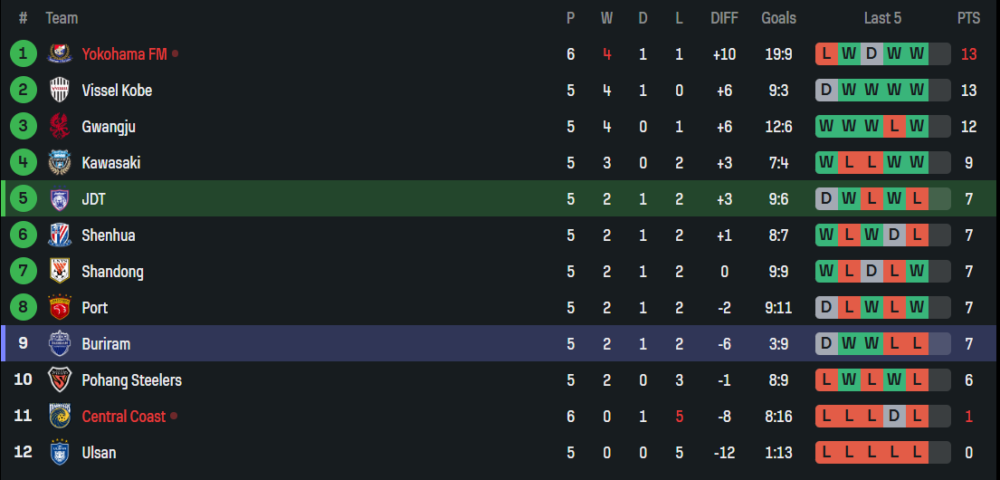 - ยะโฮร์ ดารุล ทักซิม: ฟอร์มยอดเยี่ยมในลีก โดย 10 นัดหลังสุด ชนะ 8 แพ้ 2 เกมล่าสุดในรายการนี้ พ่ายต่อ ซานตง ไท่ซาน 0-1 แต่ในลีกพวกเขาโชว์ฟอร์มสุดโหดด้วยการถล่ม เคแอล โรว์เวอร์ส 6-0