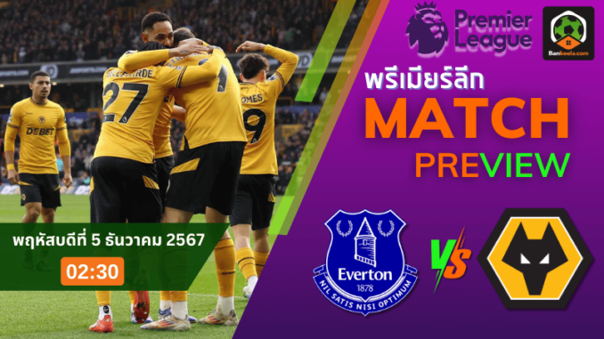 คืนนี้แฟนบอลห้ามพลาด! ศึกใหญ่ในศึก พรีเมียร์ลีก 2024 เมื่อ “ทอฟฟี่สีน้ำเงิน” เอฟเวอร์ตัน เปิดรังรับการมาเยือนของ “หมาป่า” วูล์ฟแฮมป์ตัน ณ สนามกูดิสัน พาร์ค คืนวันที่ 5 ธันวาคม 2567 เวลา 02.30 น. แมตช์นี้สำคัญสุด ๆ สำหรับทั้งสองทีมที่กำลังดิ้นรนหาความมั่นใจในตาราง ตารางบอลวันนี้ โดยเฉพาะเจ้าบ้านที่ต้องลุ้นแต้มสำคัญเพื่อหลุดพ้นโซนอันตราย