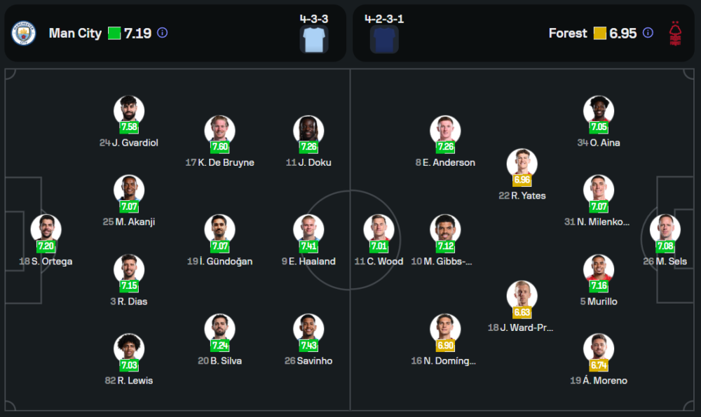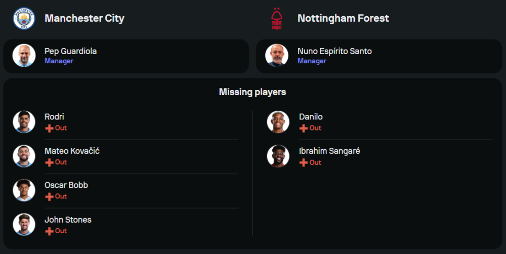 ด้านฟอเรสต์ภายใต้การคุมทีมของ นูโน่ เอสปิริโต้ ซานโต กำลังอยู่ในช่วงมั่นใจหลังเอาชนะอิปสวิช 1-0 ในเกมล่าสุด ทีมไม่มีรายงานนักเตะบาดเจ็บเพิ่มเติม แต่ยังคงขาด ดานิโล่ และ อิบราฮิม่า ซ็องกาเร่ ที่ยังต้องพักรักษาตัว ระบบ 4-2-3-1 จะถูกใช้ในเกมนี้ โดยมี คริส วู้ด เป็นหน้าเป้าหลัก และตัวรุกอย่าง มอร์แกน กิ๊บบ์ส-ไวท์ กับ คัลลั่ม ฮัดสัน-โอดอย พร้อมสร้างปัญหาให้แนวรับเจ้าบ้าน