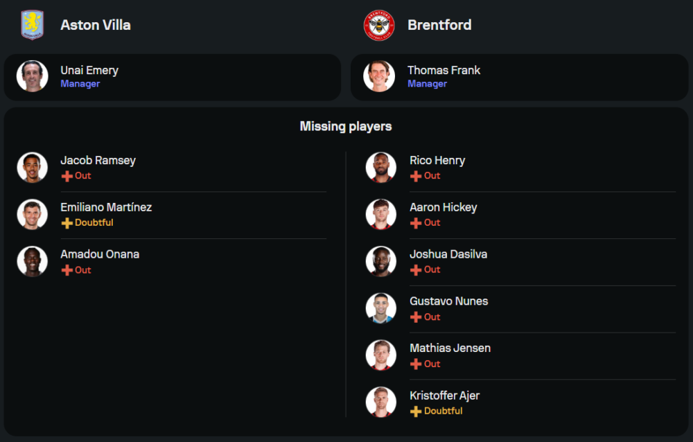 ความพร้อมของทีม: แอสตัน วิลล่า