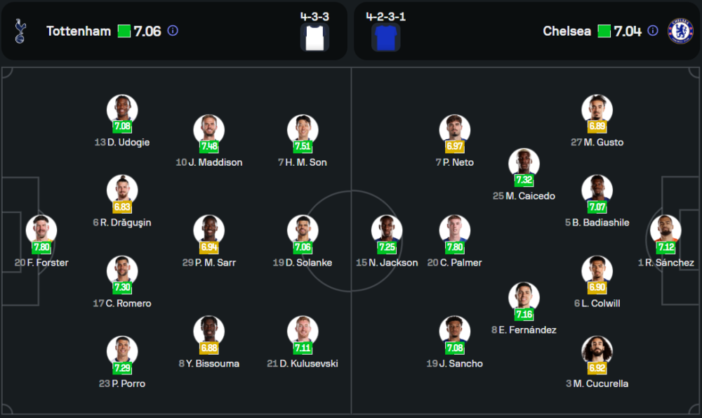 เอ็นโซ่ มาเรสก้า กุนซือของทีมเยือน จะขาด รีซ เจมส์ และ เวสเล่ย์ โฟฟาน่า ที่ยังบาดเจ็บ แต่ผู้เล่นหลักอื่นๆ พร้อมลงสนามเต็มกำลัง โดยเฉพาะ นิโกลัส แจ็คสัน ที่ฟอร์มกำลังร้อนแรงหลังตะบันแฮตทริกในซีซั่นก่อนในการเจอกับสเปอร์ส เกมนี้ เชลซีจะมาในระบบ 4-2-3-1 โดยมี 3 ประสาน เจดอน ซานโช่, โคล พาลเมอร์ และ เปโดร เนโต้ คอยปั้นเกมรุกให้กับ แจ็คสัน ที่พร้อมปิดบัญชี