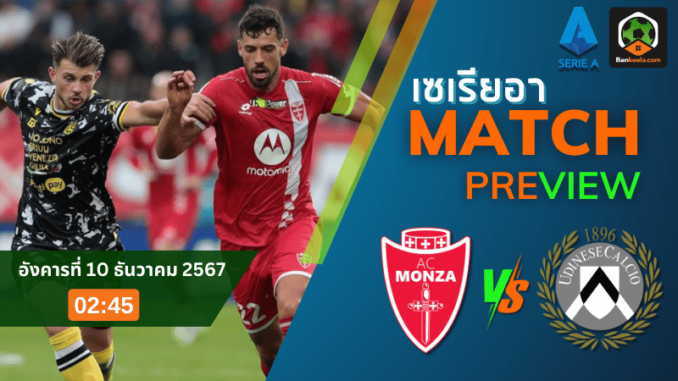 ค่ำคืนแห่งเซเรีย อา ที่ต้องจับตามอง! มอนซ่า 1912 ทีมรองบ๊วยอันดับ 19 จะเปิดบ้านรับการมาเยือนของ อูดิเนเซ่ ทีมอันดับ 9 ในเกมสำคัญที่มีเป้าหมายต่างกันชัดเจน เจ้าบ้านต้องการทุกแต้มเพื่อดิ้นรนจากโซนตกชั้น ขณะที่ทีมเยือนหวังคว้าสามแต้มเพื่อไต่อันดับในลีก เกมนี้อัดแน่นไปด้วยความกดดันและความมันส์ อย่าลืมเช็ค ตารางบอลวันนี้ แล้วเตรียมลุ้นไปพร้อมกัน!