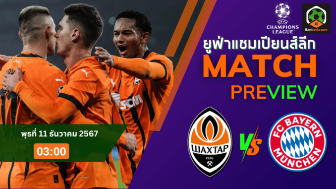 คืนวันพุธที่ 11 ธันวาคม 2567 เวลา 03.00 น. แฟนบอลเตรียมพบกับเกมเดือดในศึก ยูฟ่าแชมเปียนส์ลีก รอบแบ่งกลุ่ม เมื่อ เอฟซี ชักตาร์ โดเน็ตส์ก ทีมอันดับ 26 ต้องเปิดบ้านรับมือ บาเยิร์น มิวนิค ทีมยักษ์ใหญ่จากเยอรมนี อันดับ 13 ของกลุ่ม แมตช์นี้มีความสำคัญสูงสำหรับทั้งสองทีม โดย ตารางบอลวันนี้ ชี้ให้เห็นว่าทั้งคู่ต่างต้องการชัยชนะเพื่อเป้าหมายที่แตกต่างกันในรอบต่อไป