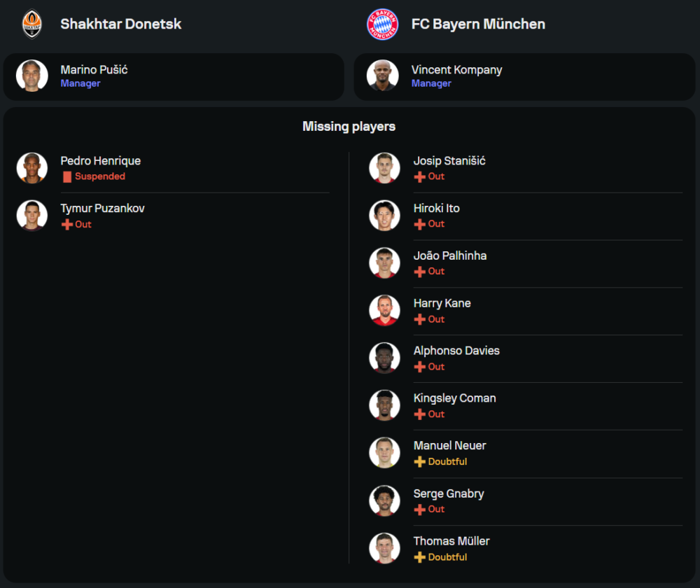 แมตช์ล่าสุดที่ทั้งสองทีมเผชิญหน้ากันในรายการนี้เกิดขึ้นเมื่อ 15 ปีก่อน โดยในเกมแรก บาเยิร์น มิวนิค เปิดบ้านถล่ม ชักตาร์ โดเน็ตส์ก ขาดลอยถึง 7-0 แต่ในอีกเกมหนึ่งที่สนามของชักตาร์ เกมนั้นจบลงด้วยผลเสมอ 0-0 แน่นอนว่าครั้งนี้เจ้าบ้านต้องการลบสถิติที่ไม่น่าจดจำ ส่วนทีมเยือนย่อมต้องการย้ำความเหนือชั้นด้วย ทีเด็ดบอล อันยอดเยี่ยมของพวกเขา