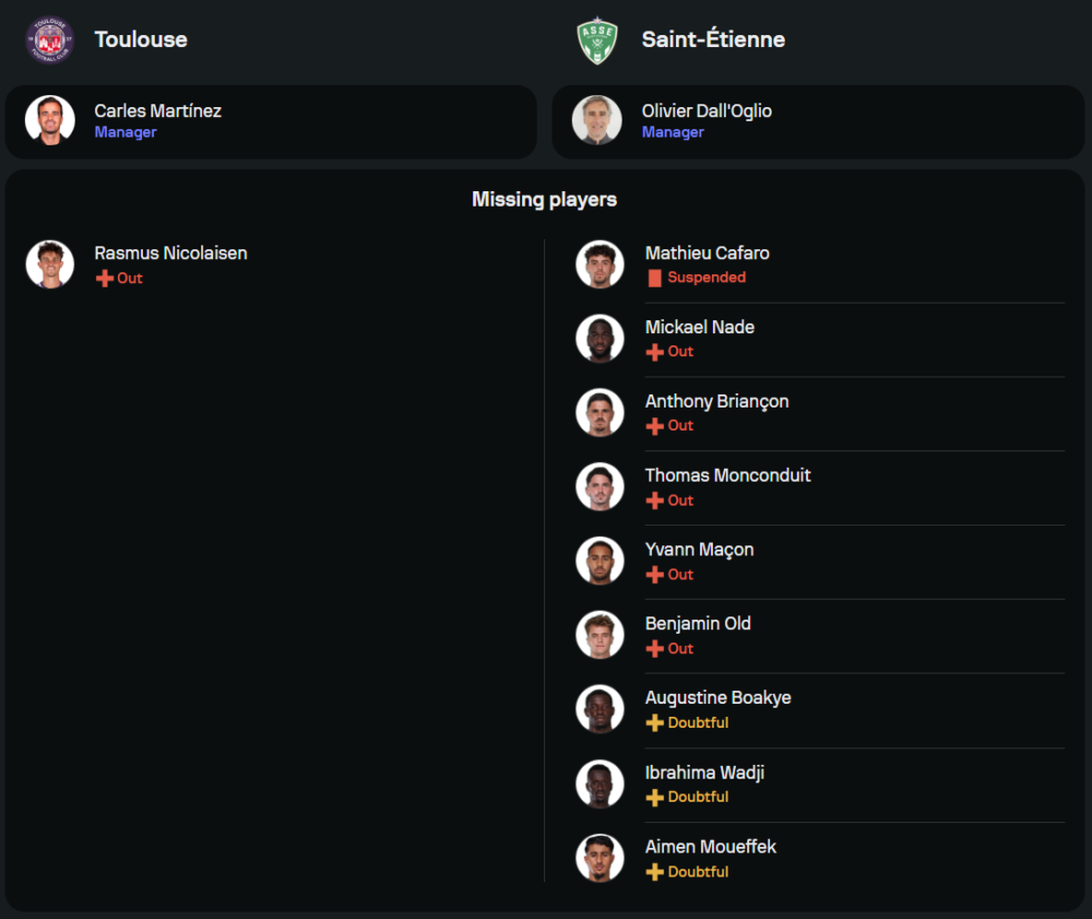 ฟอร์มทีมเยือนกลับน่าเป็นห่วง พวกเขาแพ้ถึง 4 จาก 5 นัดหลังสุดในลีก โดยเฉพาะเกมเยือนที่ไม่ชนะใครเลยใน 7 นัดล่าสุด และเสียประตูถึง 25 ลูก สถานการณ์นี้ทำให้พวกเขาต้องเน้นเกมรับให้แน่นขึ้น หากหวังแบ่งแต้มจากตูลูสในนัดนี้
