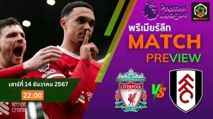 วิเคราะห์บอลพรีเมียร์ลีก 2024 ระหว่าง ลิเวอร์พูล พบ ฟูแล่ม 14/12/67