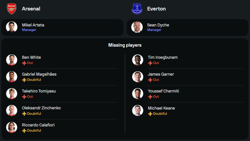 ทีมของ ฌอน ไดช์ เผชิญปัญหาผู้เล่นบาดเจ็บอยู่บ้าง โดยเฉพาะตัวหลักอย่าง เจมส์ การ์เนอร์ และ ทิโมธี่ อิโรจีบูนัม อย่างไรก็ตาม โดมินิก คัลเวิร์ต-เลวิน ยังคงเป็นความหวังสูงสุดในแดนหน้า ขณะที่ อับดูลาย ดูกูเร่ จะทำหน้าที่สนับสนุนเกมรุกในบทบาทเพลย์เมคเกอร์
