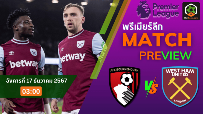 วิเคราะห์บอลพรีเมียร์ลีก 2024 ระหว่าง บอร์นมัธ เอเอฟซี พบ เวสต์แฮมยูไนเต็ด 16/12/67