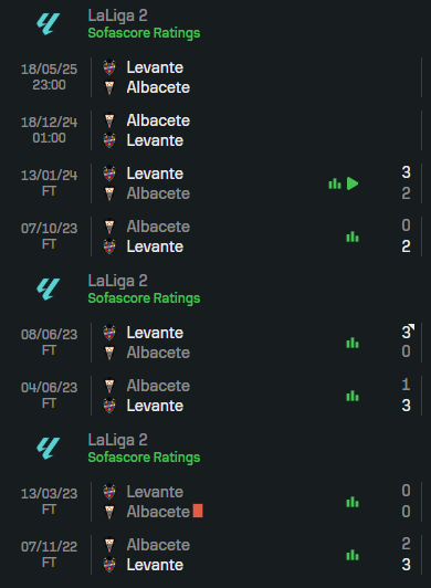 สถิติย้อนหลังแสดงให้เห็นว่า เลบานเต้ ทำได้ดีกว่าในการดวลกับ อัลบาเซเต้ โดยเก็บชัยชนะได้ถึง 4 นัดจากการเจอกัน 5 ครั้งหลังสุด นอกจากนี้ พวกเขายังมีเกมรุกที่เฉียบคมและมักสร้างความลำบากให้แนวรับอัลบาเซเต้เสมอ ทีเด็ดบอล อาจมองว่าเลบานเต้ดูเหนือกว่าในแง่ของประสิทธิภาพการเล่น แต่เจ้าบ้านเองก็ไม่ยอมปล่อยให้แต้มหลุดมือได้ง่ายๆ