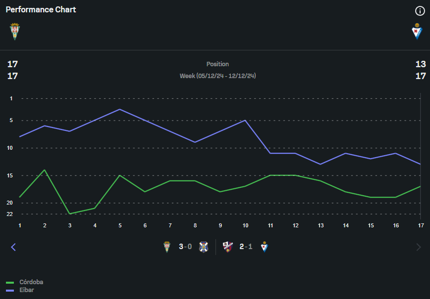 กอร์โดบา: แม้ฟอร์มในลีกจะไม่โดดเด่นมากนัก โดยเก็บชัยได้เพียง 1 นัดจาก 5 เกมหลังสุด แต่ผลงานในบ้านยังคงยอดเยี่ยม ชนะ 5 จาก 9 นัดในฤดูกาลนี้ พร้อมกระหน่ำประตูรวมถึง 18 ลูก และเสียเพียง 8 ประตูเท่านั้น