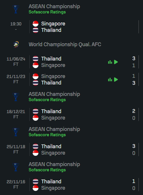 หากย้อนดูสถิติการพบกันระหว่าง สิงคโปร์ และ ไทย ต้องบอกเลยว่าขุนพลช้างศึกเป็นฝ่ายเหนือกว่าชัดเจน โดยสามารถเก็บชัยชนะได้ทั้งหมด 8 นัดติดต่อกัน ซึ่งเกมล่าสุด ไทย เปิดบ้านเอาชนะไปได้ 3-1 จึงทำให้สถิติเหล่านี้ยังคงเป็นเงาหนักที่เจ้าถิ่นจะต้องพยายามลบล้างให้ได้ แต่ด้วยฟอร์มที่กำลังร้อนแรงของทั้งสองทีม จึงทำให้เกมนี้มีความน่าสนใจมากยิ่งขึ้น และสำหรับแฟนบอลที่ชื่นชอบการวิเคราะห์แม่นยำ ทีเด็ดบอล คงมองว่า ไทย ยังคงถือไพ่เหนือกว่าเล็กน้อย