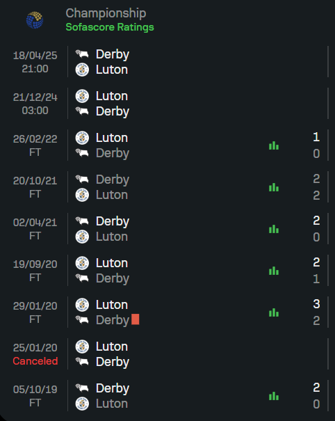 จาก 10 นัดล่าสุดที่ทั้งสองทีมพบกัน แสดงให้เห็นถึงความสูสีที่น่าตื่นเต้น โดย ลูตัน ทาวน์ เก็บชัยชนะได้ถึง 5 นัด ขณะที่ ดาร์บี้ เค้าท์ตี้ คว้าชัยไป 3 นัด และเสมอกันอีก 2 ครั้ง สถิติเหล่านี้ทำให้เกมนี้น่าสนใจสำหรับผู้ที่กำลังมองหา ทีเด็ดบอล เพราะทั้งสองทีมมีจุดเด่นในสไตล์การเล่นที่แตกต่างกัน และพร้อมดวลกันอย่างดุเดือด