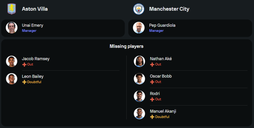 ด้าน แมนเชสเตอร์ ซิตี้ ของ เป๊ป กวาร์ดิโอล่า ผลงานไม่คงเส้นคงวาในช่วงหลัง โดยแพ้ถึง 3 จาก 5 นัดล่าสุด แถมยังมีปัญหานักเตะบาดเจ็บยาว อาทิ โรดริโก้ เอร์นานเดซ และ นาธาน อาเก้ แต่ยังคงมีความหวังในแนวรุกจาก เออร์ลิ่ง ฮาลันด์ และ เควิน เดอ บรอยน์ ที่พร้อมสร้างความอันตรายให้แนวรับเจ้าบ้าน