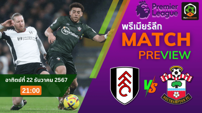 ดูบอลพรีเมียร์ลีก 2024 ถ่ายทอดสด ฟูแล่ม vs เซาแธมป์ตัน 22/12/67 – บ้านกีฬา