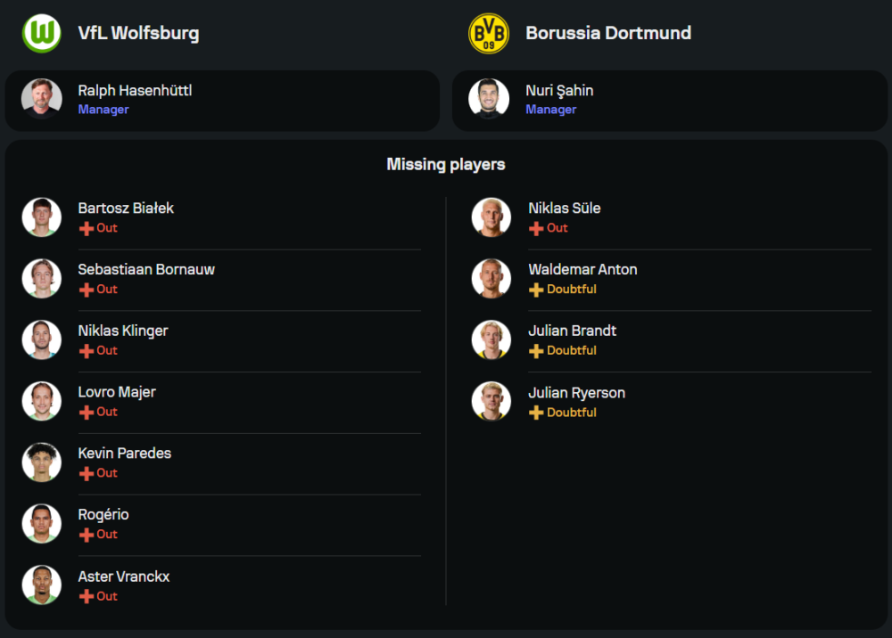 โวล์ฟสบวร์ก ยังคงรักษาฟอร์มในบ้านได้อย่างยอดเยี่ยม โดยชนะรวด 3 นัดล่าสุด ยิงได้ 8 ประตูและเสียเพียง 3 ลูก พวกเขามีเกมรุกที่ดุดันและแนวรับที่มั่นคงเมื่อเล่นในรังตัวเอง
