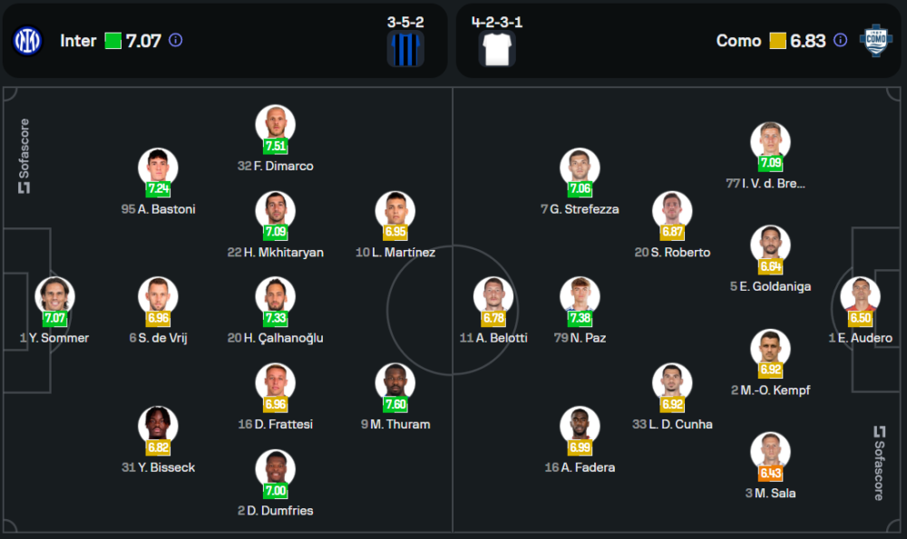 อินเตอร์ มิลาน: ทีมของ ซิโมเน่ อินซากี้ ยังคงโชว์ฟอร์มแกร่งไร้พ่ายในลีก 10 นัดติด สภาพทีมแม้จะขาดตัวหลักอย่าง นิโคโล่ บาเรลล่า และ แบ็งฌาแม็ง ปาวาร์ แต่ยังมีขุมกำลังพร้อมรบ ไม่ว่าจะเป็น มาร์คุส ตูราม ที่กำลังร้อนแรง และ เลาตาโร่ มาร์ติเนซ ที่ยิงประตูต่อเนื่อง เกมนี้พวกเขาพร้อมจัดเต็มในระบบ 3-5-2 โดยมี ดาวิเด้ ฟรัตเตซี่ และ เฮนริค มคิตาร์ยาน คุมแดนกลาง