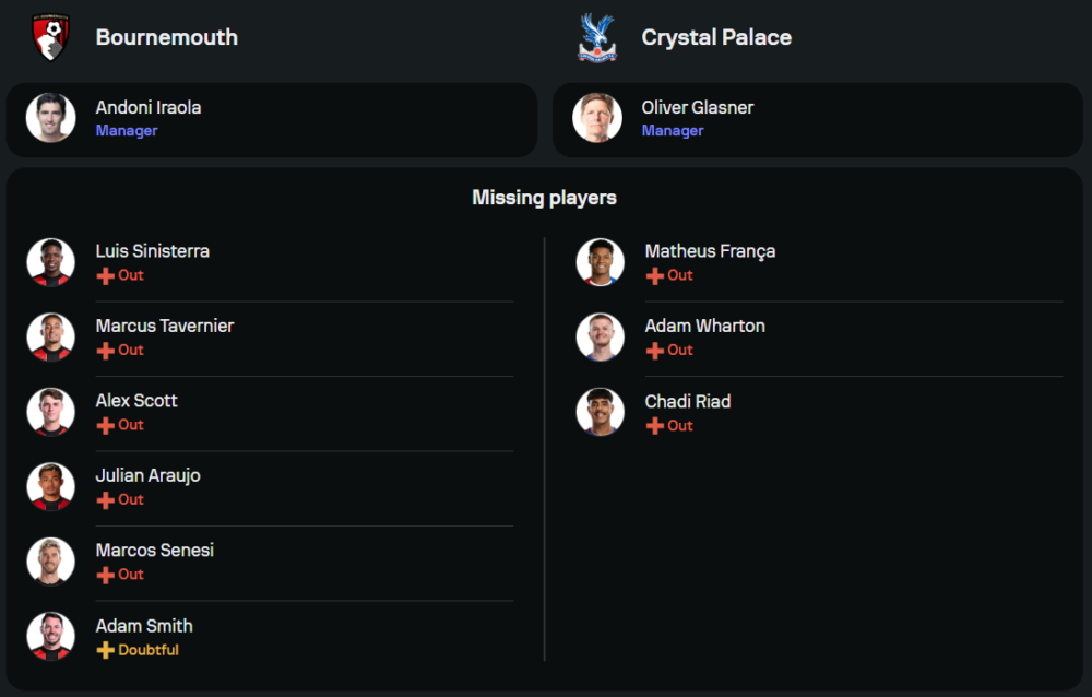 อันโดนี่ อิราโอล่า กุนซือของบอร์นมัธ มีปัญหาเล็กน้อยจากผู้เล่นที่บาดเจ็บซึ่งยังคงพักฟื้นอย่าง หลุยส์ ซินิสเตร์ร่า, ฮูเลี่ยน อาเราโฮ่ และ มาร์คุส ทาเวอร์เนียร์ แต่ขุมกำลังหลักที่เหลือยังคงสมบูรณ์ โดยเฉพาะเกมรุกที่นำโดย อีวานิลซอน และตัวสนับสนุนอย่าง จัสติน ไคลเวิร์ต ที่พร้อมลุยในระบบ 4-2-3-1 ทีมหวังคว้าชัยในบ้านเพื่อเพิ่มโอกาสลุยศึกใหญ่ในฤดูกาลหน้า